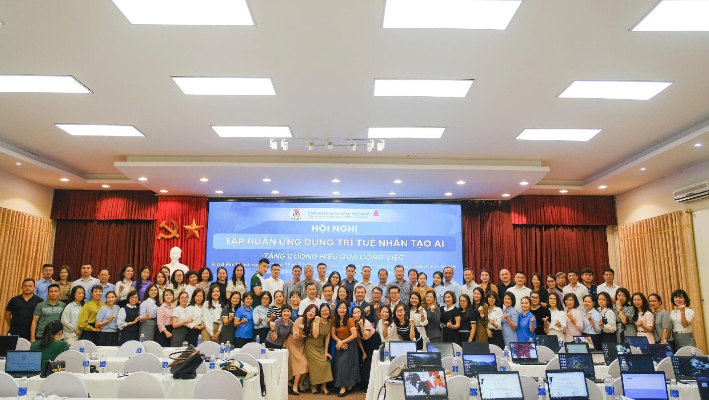 Cán bộ chuyên trách Công đoàn Vietcombank tham dự Hội nghị tập huấn ứng dụng trí tuệ nhân tạo AI do Công đoàn Ngân hàng Việt Nam tổ chức (tháng 5/2025)