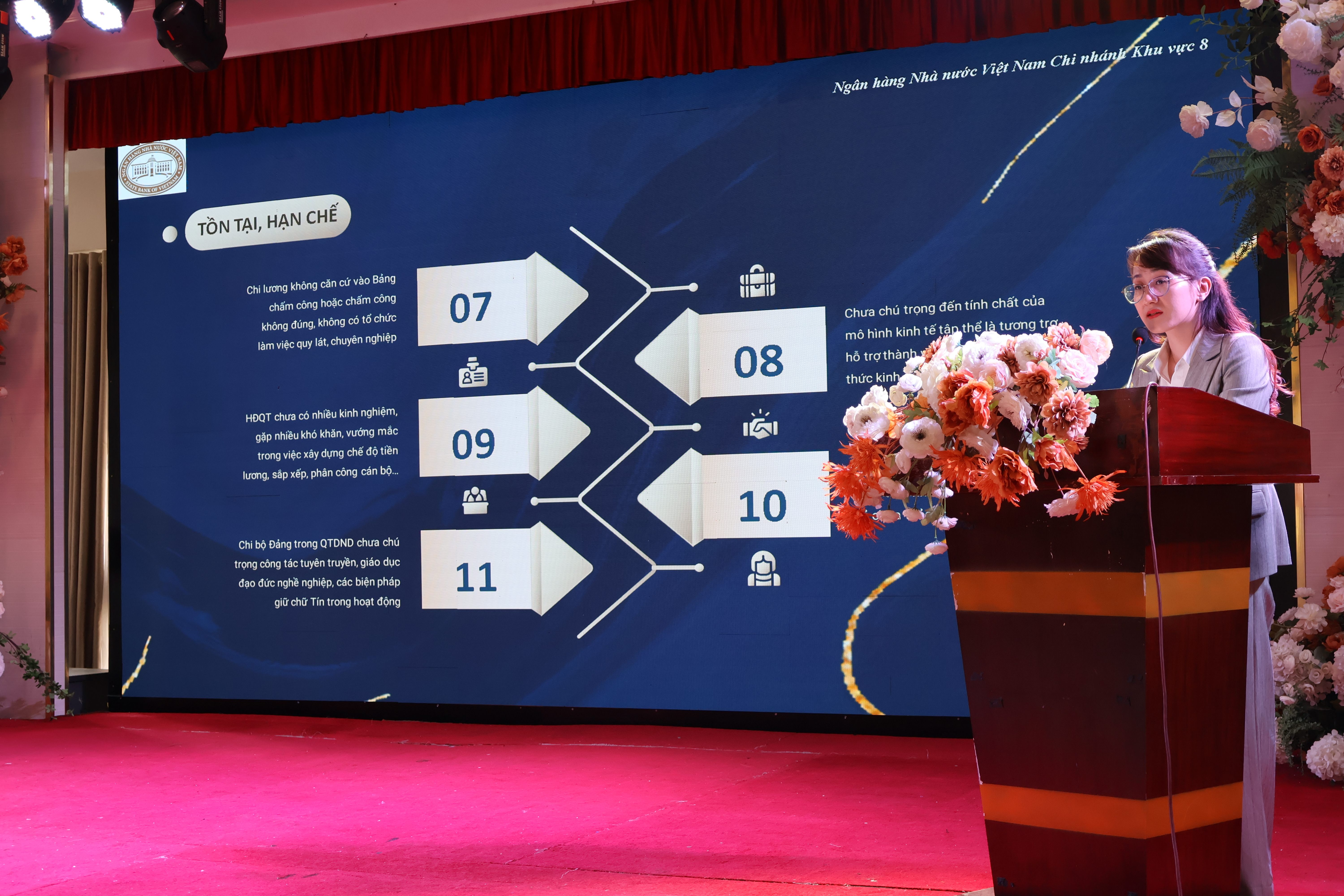 Kết luận Hội nghị, lãnh đạo NHNN Chi nhánh khu vực 8 đề nghị các QTDND nghiêm túc tiếp thu các nội dung đã được tập huấn; chủ động rà soát, hoàn thiện phương án tiền lương và củng cố hoạt động của Ban kiểm soát tại đơn vị nhằm nâng cao năng lực quản trị, tăng cường kỷ luật, kỷ cương, bảo đảm hoạt động an toàn, hiệu quả và phát triển bền vững của hệ thống QTDND trên địa bàn Khu vực 8.