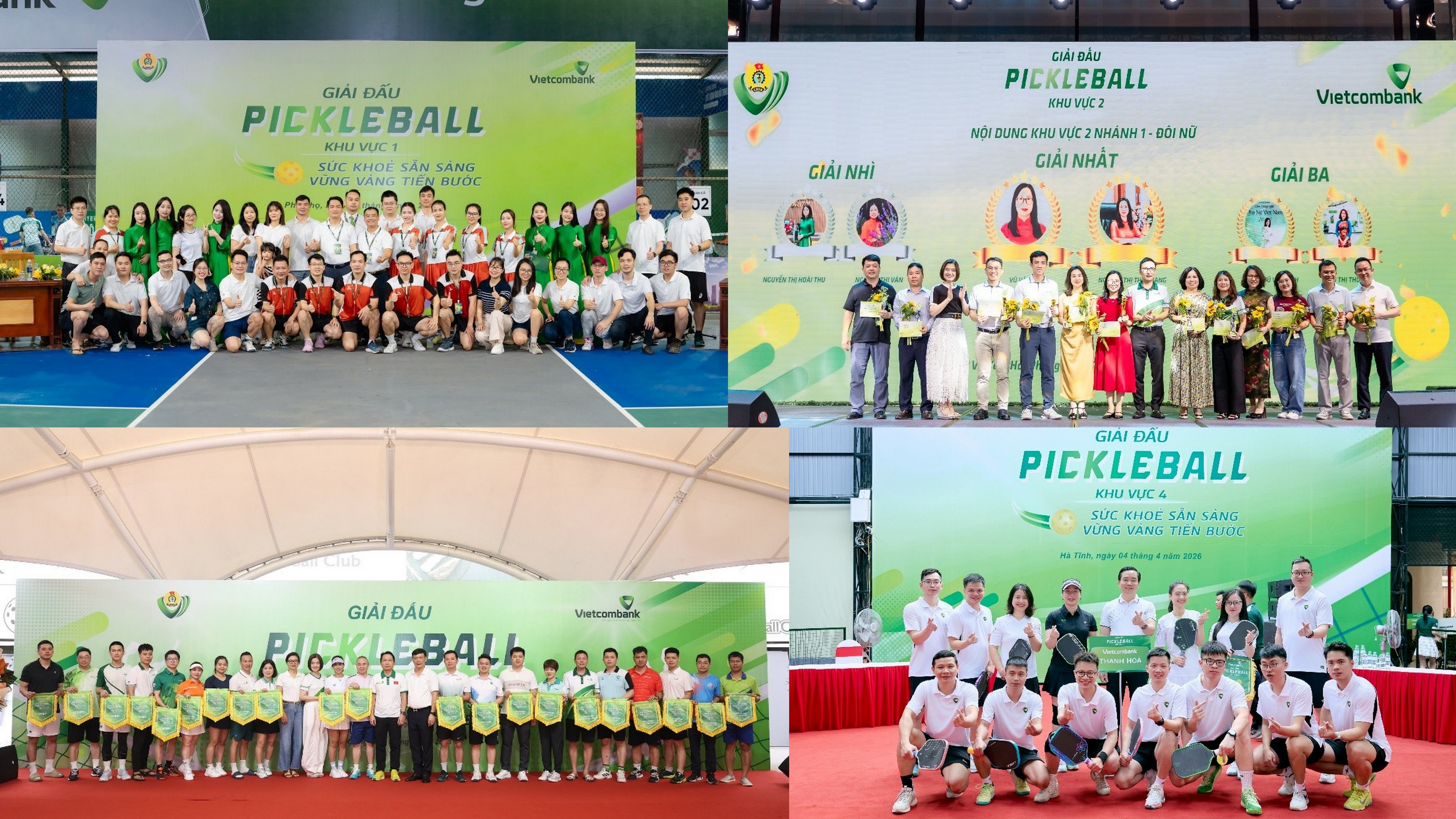 Giải Pickleball tại khu vực 1 Phú Thọ, Khu vực 2 tại Hải Phòng, Khu vực 3 tại Hà Nội, Khu vực 4 tại Hà Tĩnh